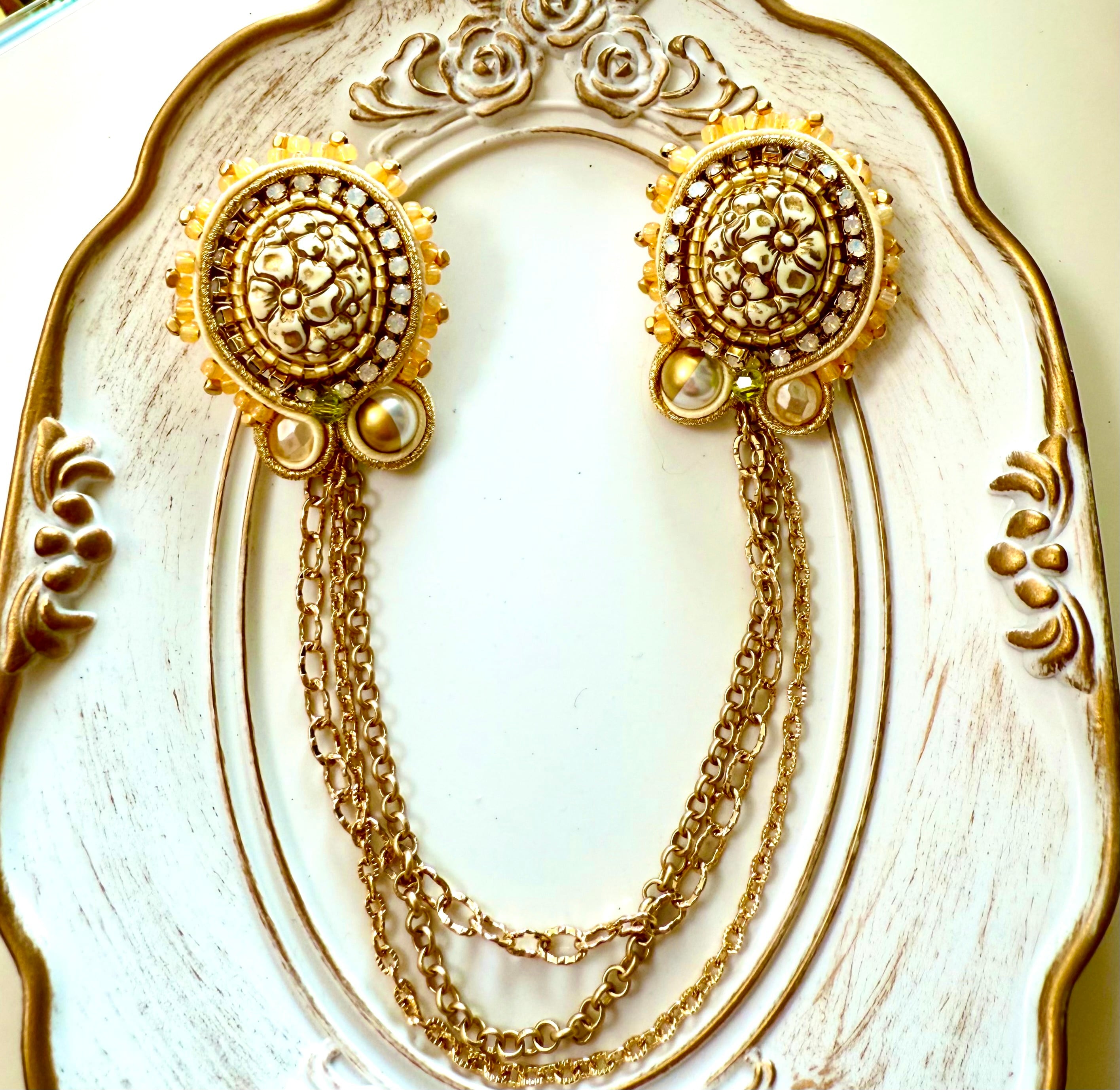 ゴールドビーズ、ゴールドコードを使っているので、ダイヤレーンはオパールにしました。